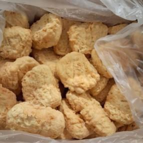 Filet de cabillaud MSC, sans arêtes, enrobé d’une pâte à beignet, préfrit, surgelé.